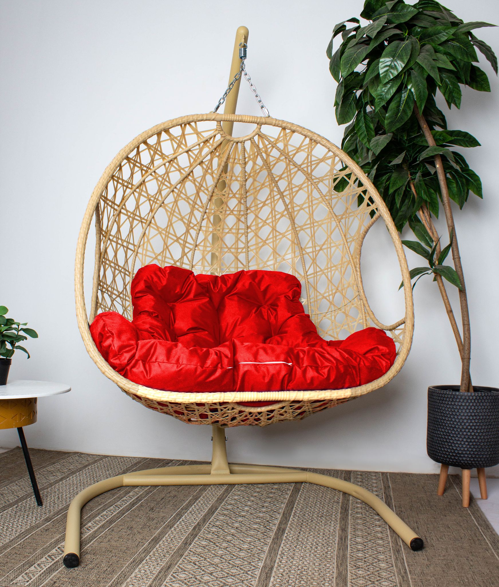 Отзывы о Столплит Подвесное кресло ДЛЯ ДВОИХ ЛЮКС с ротангом бежевое Красный