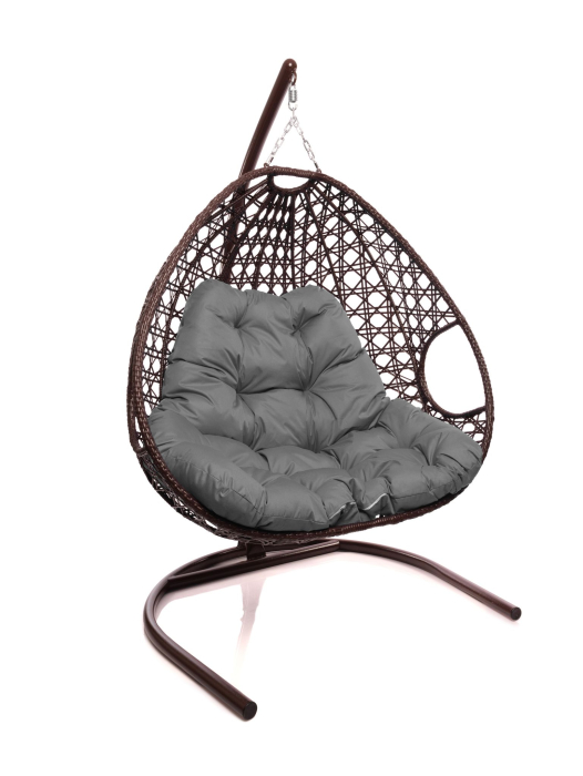 Отзывы о Столплит Подвесное кресло ДЛЯ ДВОИХ ЛЮКС с ротангом коричневое Серый