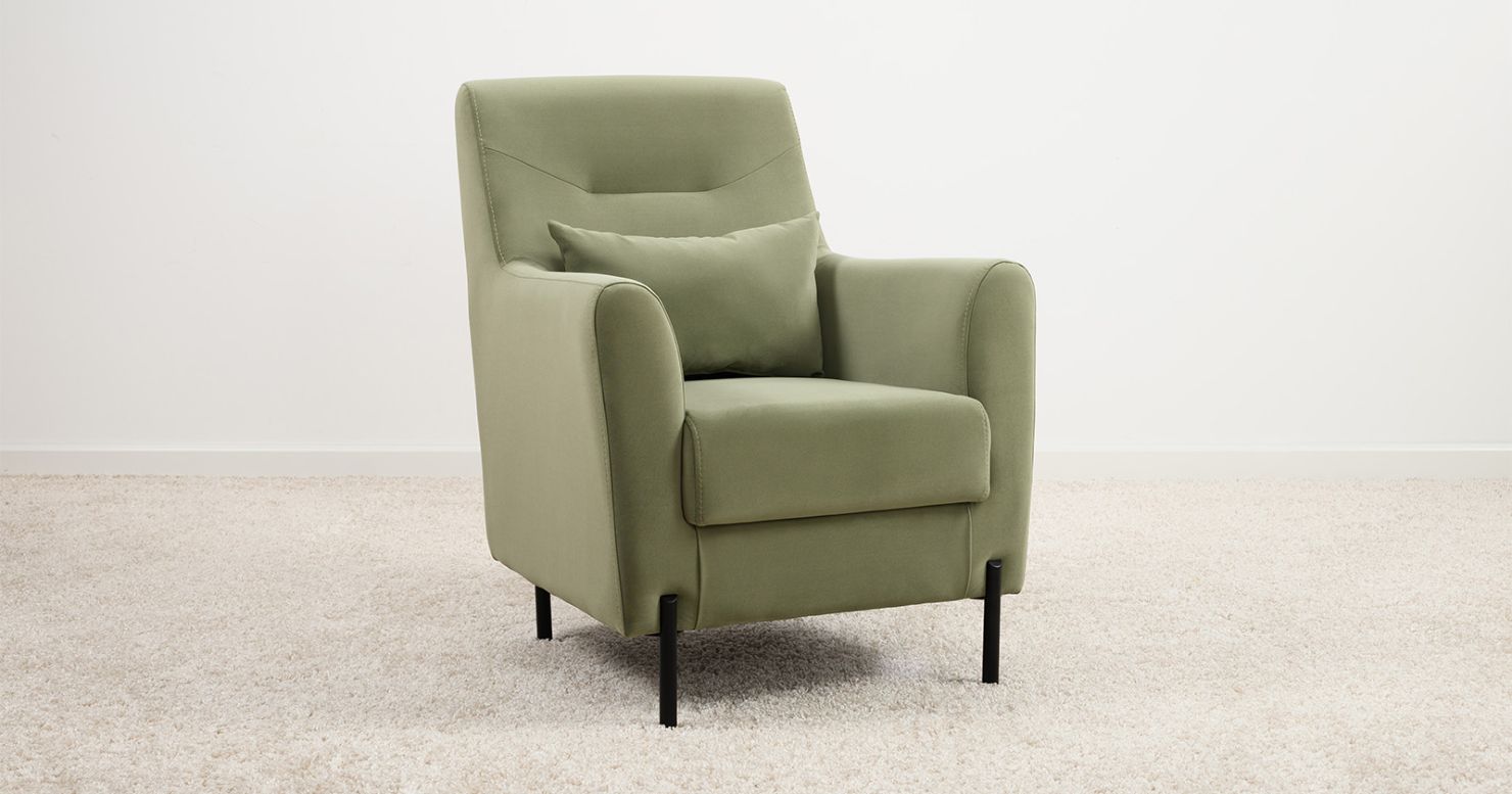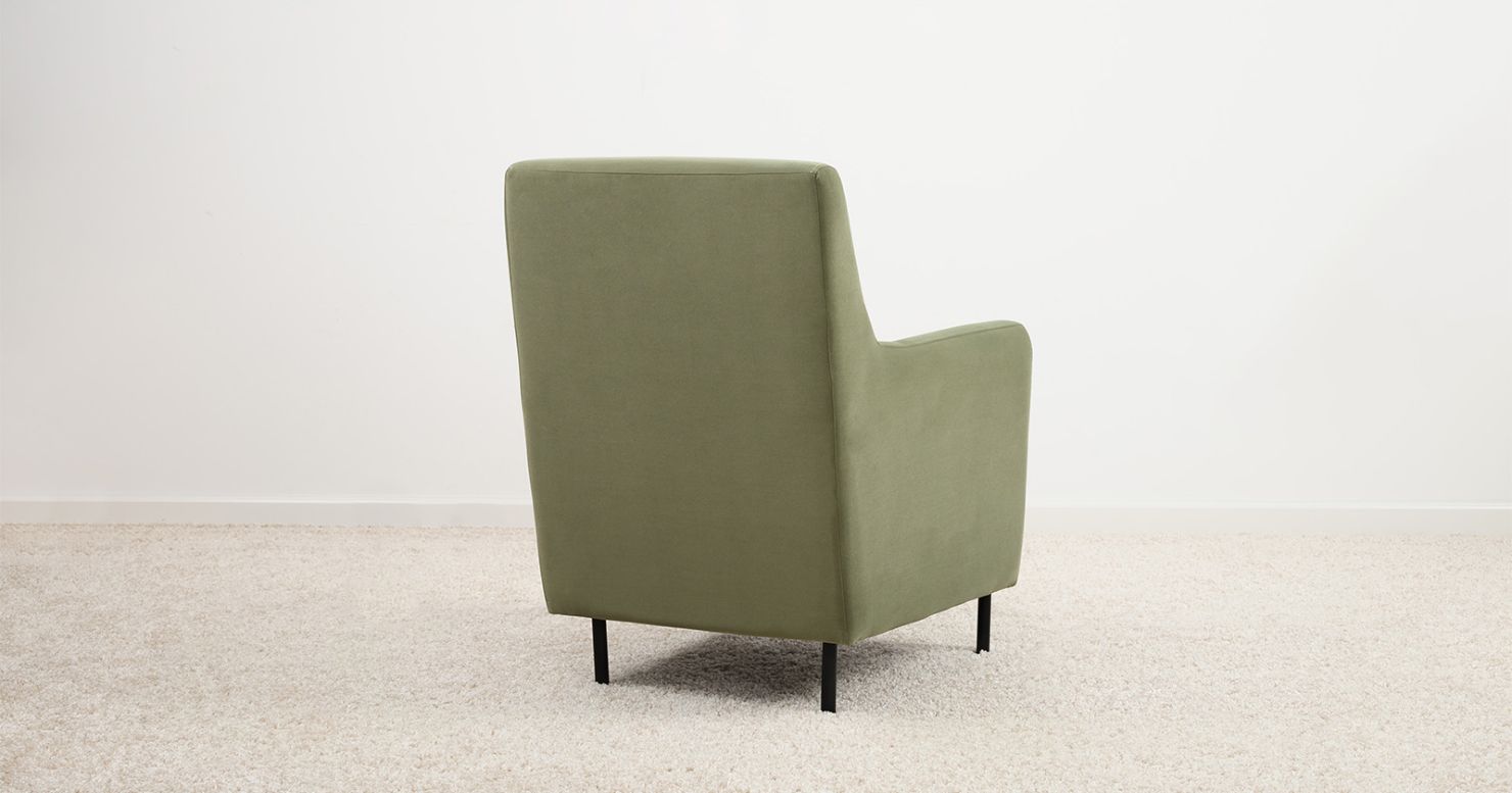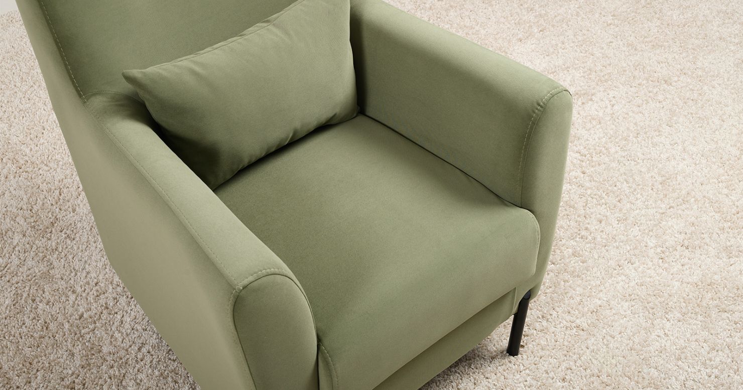 Высокие ножки из массива делают кресло визуально лёгким и