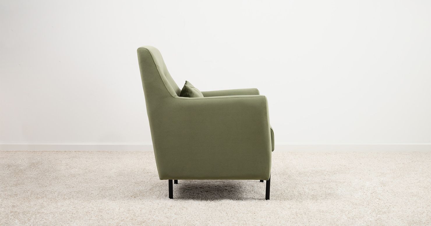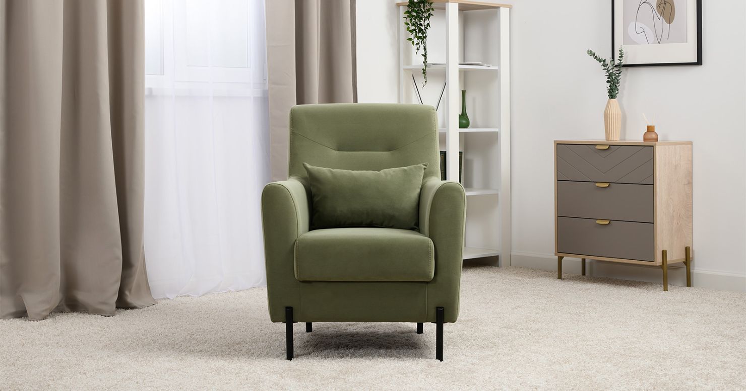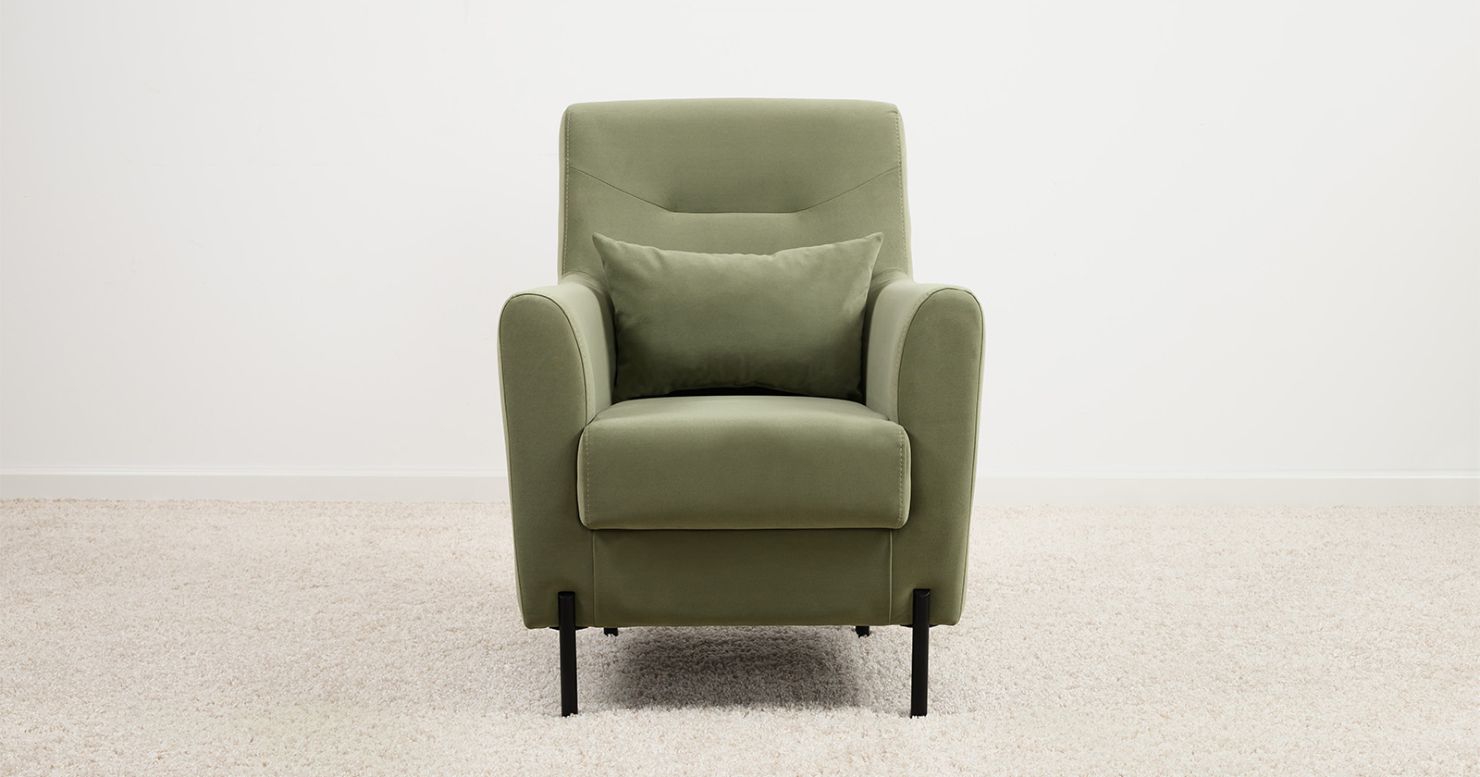 Высокие ножки из массива делают кресло визуально лёгким и