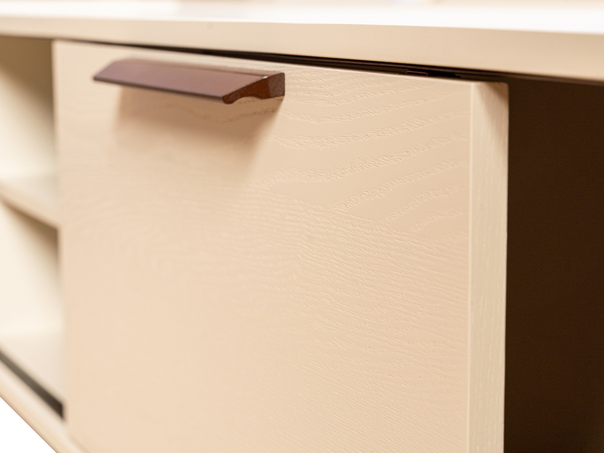 Коллекция Маранта — это гармония мягких оттенков и благородных акцентов. Светлые фасады в кремовом оттенке сочетаются с теплом натурального дерева: массивные ножки из бука и ручки из ясеня подчеркивают природную текстуру, создавая эффект естественной гармонии.