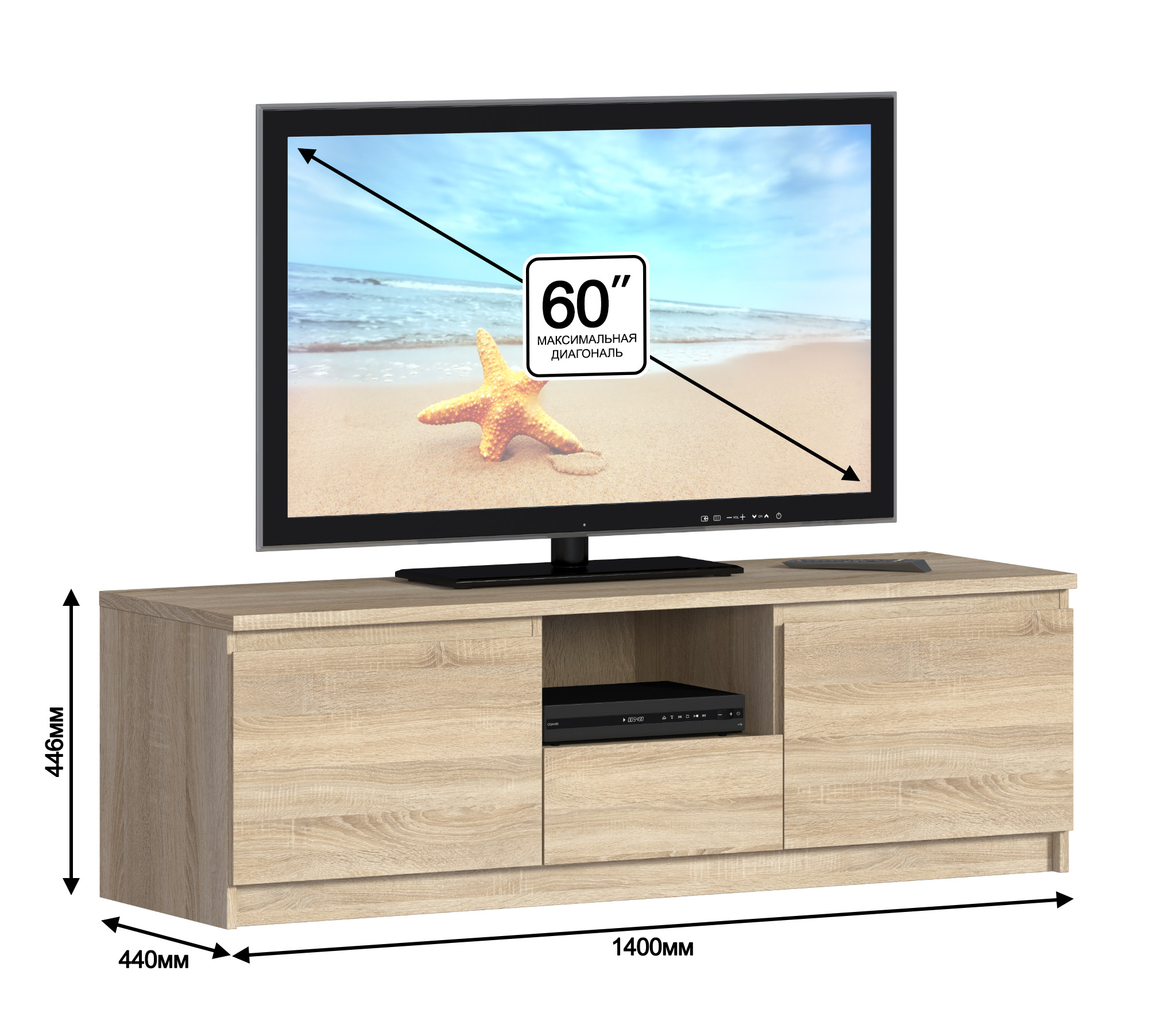- Тумба под телевизор, размером: Ш 1400 х В 450 х 440 мм.