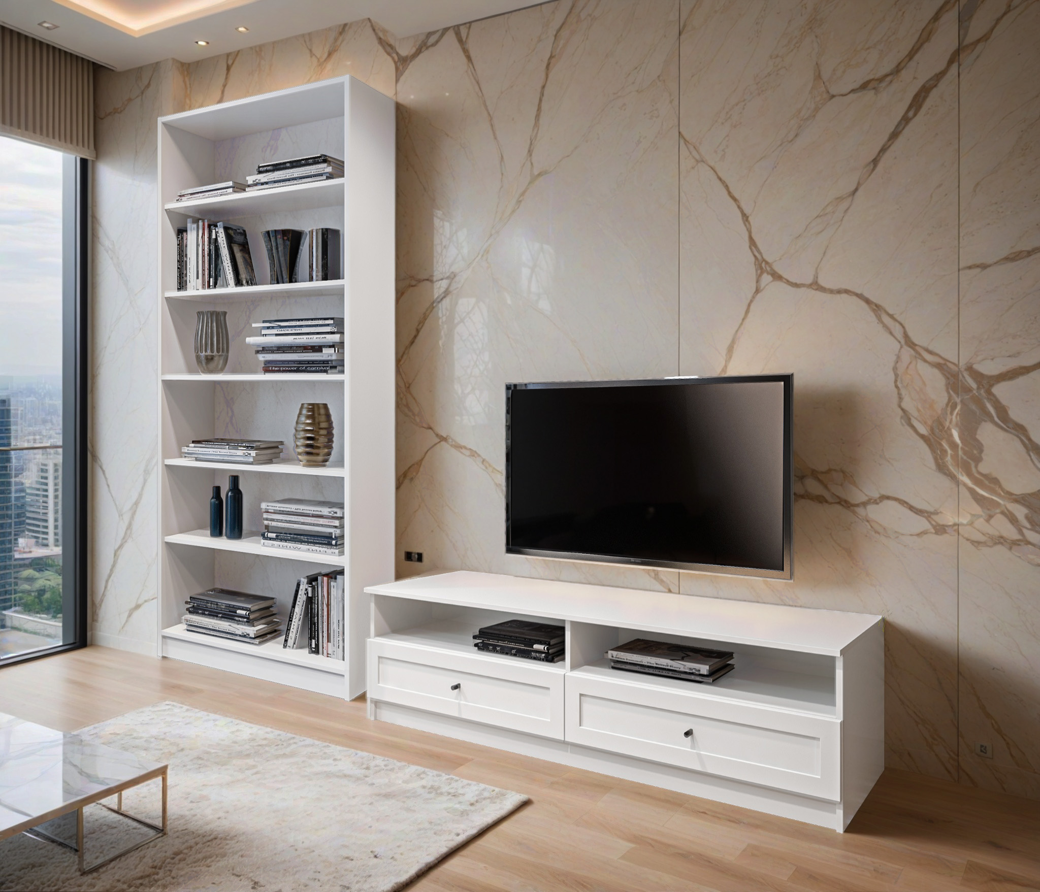 Комплект Твин (стеллаж и тумба ТВ), Белый (Белый)