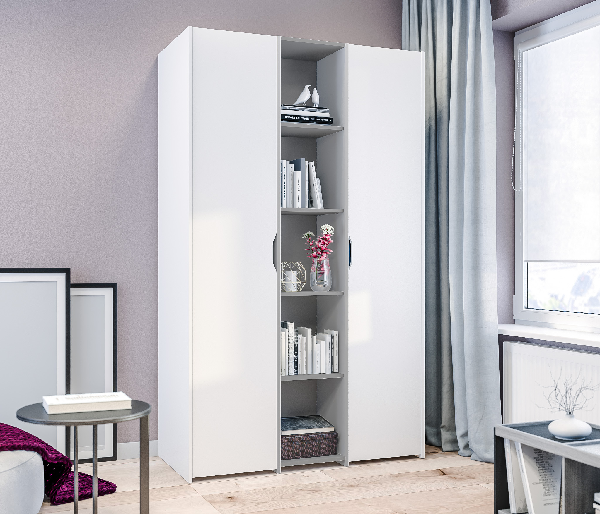 Mika СБ-3273 Шкаф 2 дверный Белый,Серый/БелыйMika СБ-3280 Кровать Белый,Серый