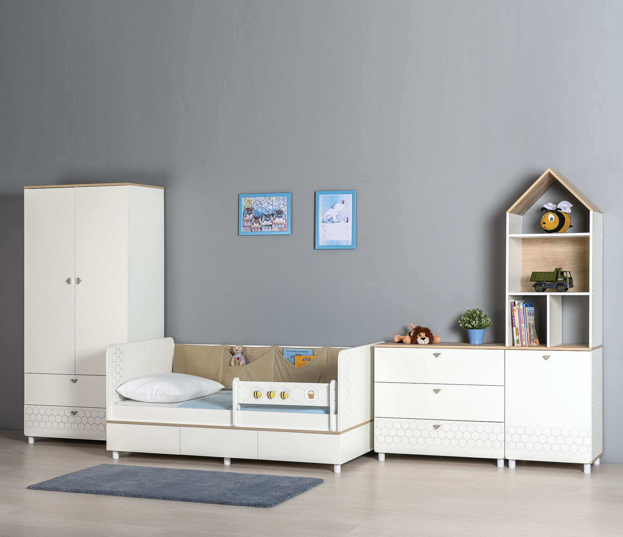 - Комплект Mika (шкаф и кровать), Белый/Серый