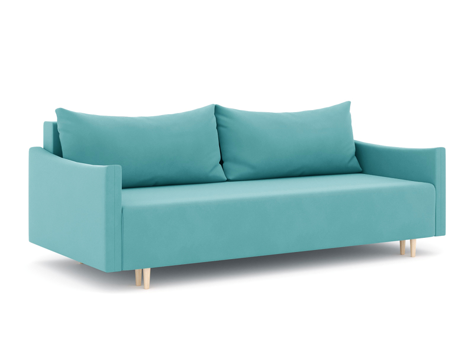 Диван-кровать еврокнижка Смайл с подлокотниками, велюр (Лазурный)