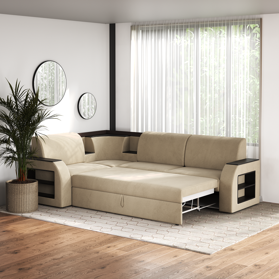 Отзывы о Столплит Угловой диван Ника-2, раскладной, с мдф столиком Бежевый