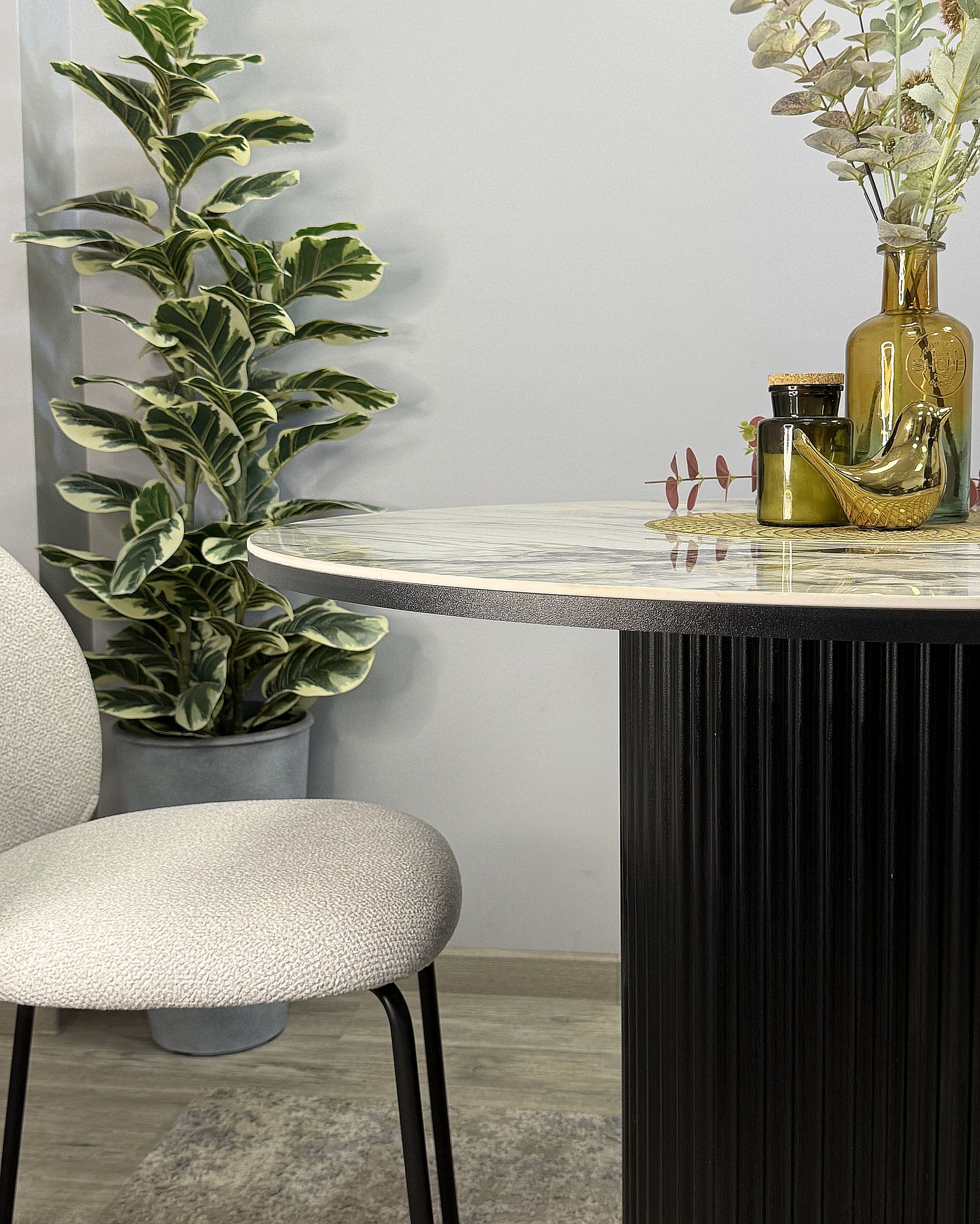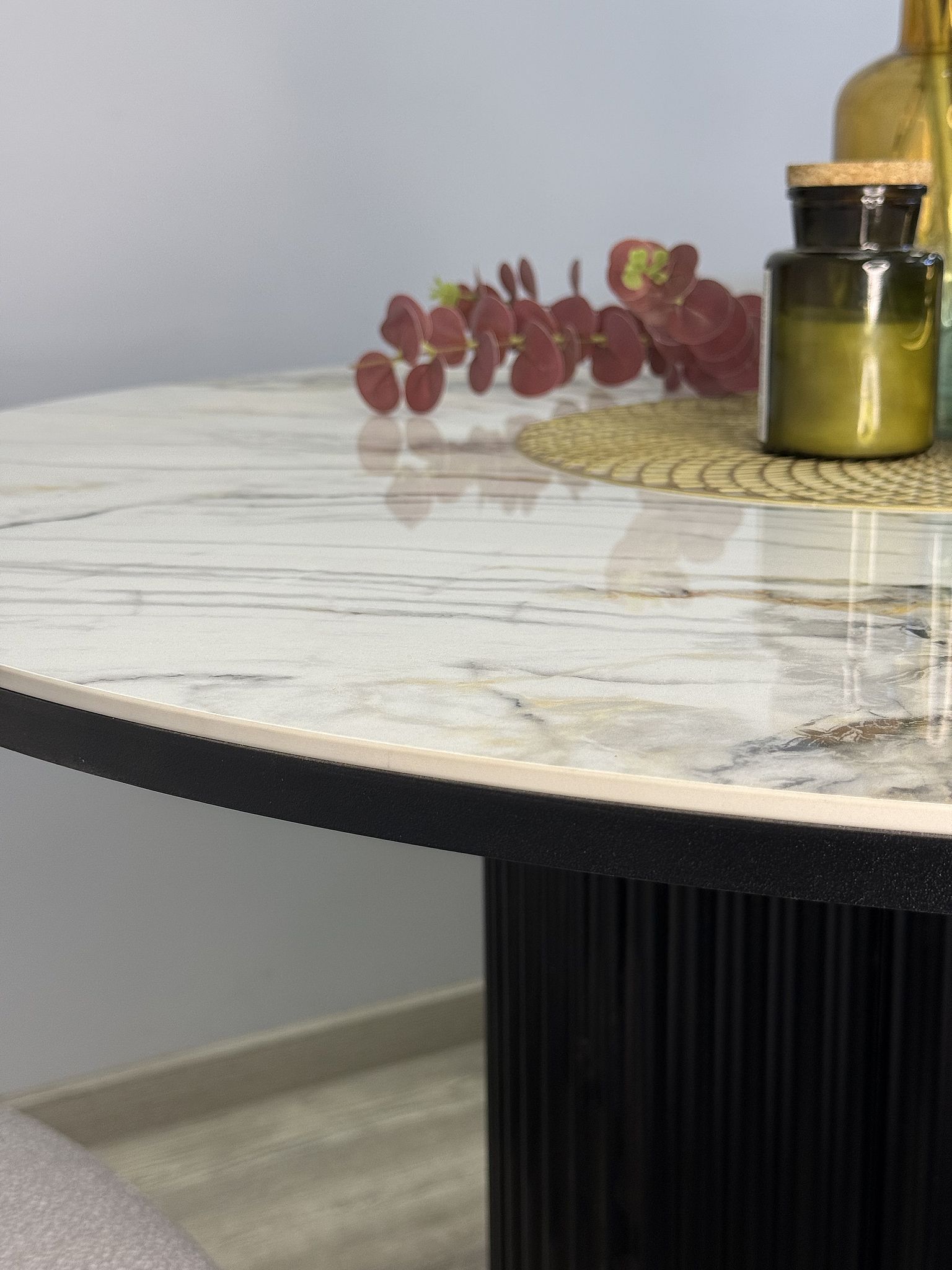 Элегантный стол без механизма трансформации. Отличается высокой устойчивостью и прекрасно сочетается с модными кухнями. Обеспечивает достаточно пространства для ног. Роскошная блестящая керамическая поверхность