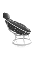 Кресло Папасан мини имеет небольшой размер, что позволяет его разместить в небольшом помещении, на лоджии и балконе. В данном садовом кресле можно отдыхать на свежем воздухе, в загородном доме, в саду, или на дачном участке. Кресло выполнено из металла 20х1,2 мм (внешнее) и внутреннее оплетение 12х1,2 мм. Корзина - стальной каркас исполнен по особой технологии собственного производства (прочным материалом, без запаха, не восприимчивым к неблагоприятным температурным и погодным условиям). В комплект входит подушка, выполненная из водоотталкивающей ткани Оксфорд 600.