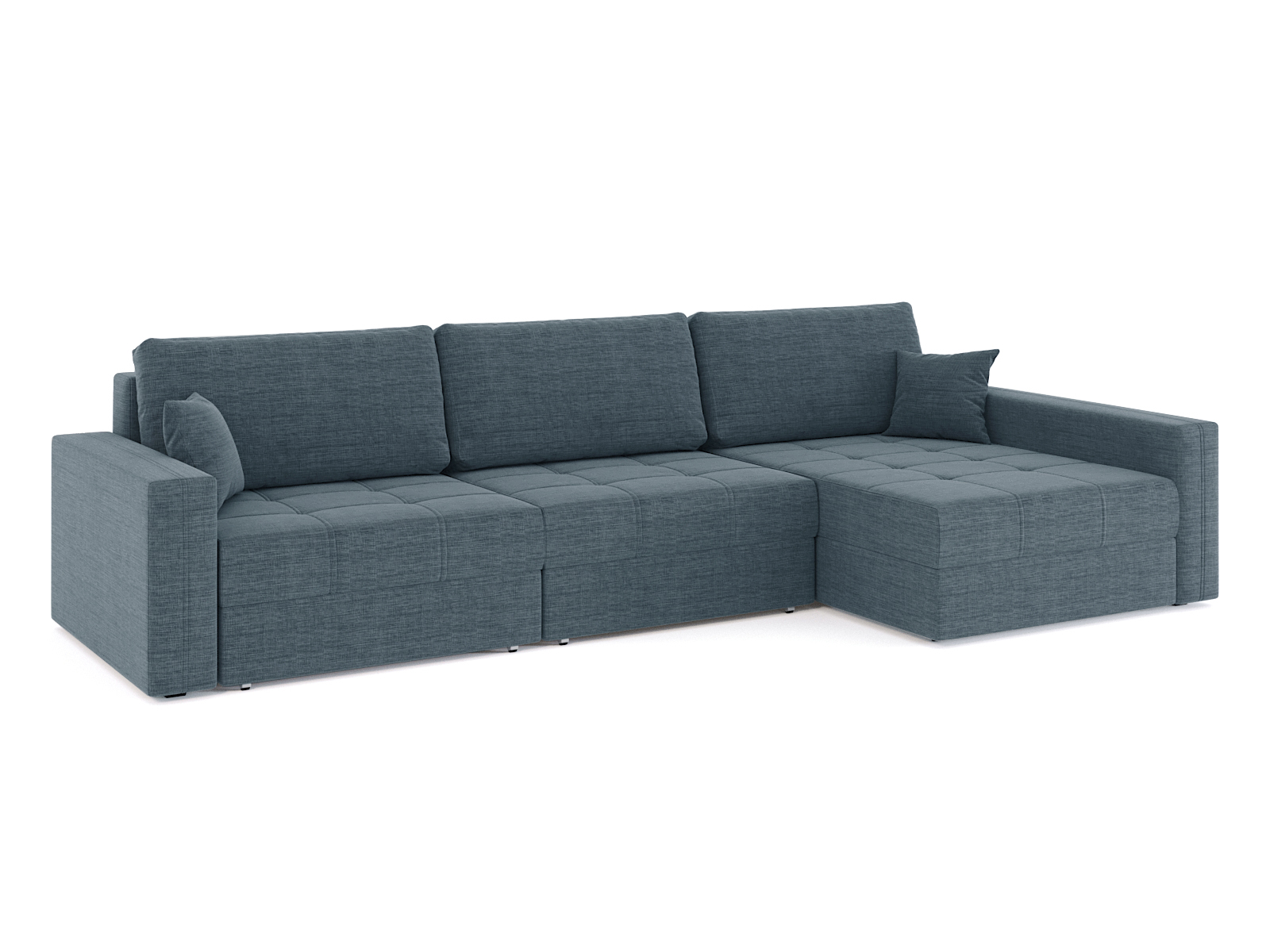 Механизм трансформации еврокнижка. Наполнение высокоэластичный ППУ. Спальное место 2940х1670. Ящик для белья в основании и в оттоманке. Глубина сиденья без подушек 960мм. Высота сиденья 450мм. Чехлы подушек съемные, наполнение крошка ППУ. В комплекте 3 большие подушки и 2 декоративные.