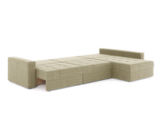 Механизм трансформации еврокнижка. Наполнение высокоэластичный ППУ. Спальное место 2940х1670. Ящик для белья в основании и в оттоманке. Глубина сиденья без подушек 960мм. Высота сиденья 450мм. Чехлы подушек съемные, наполнение крошка ППУ. В комплекте 3 большие подушки и 2 декоративные.