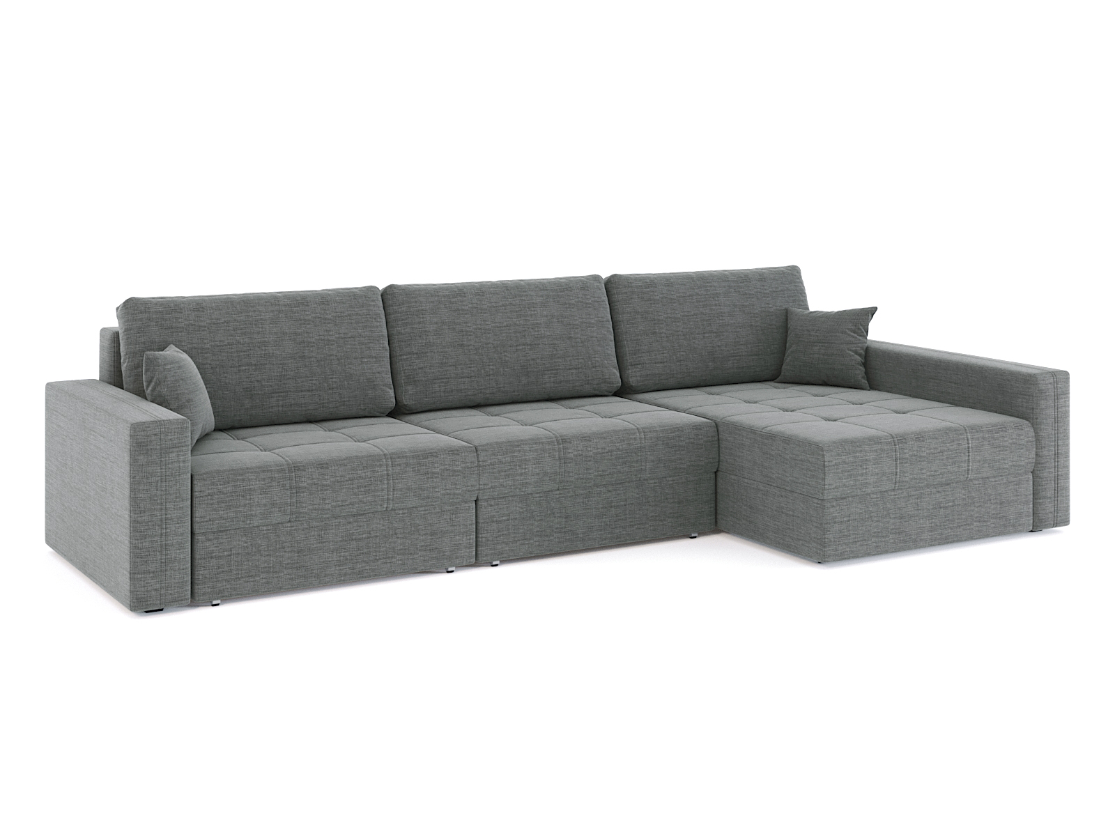 Механизм трансформации еврокнижка. Наполнение высокоэластичный ППУ. Спальное место 2940х1670. Ящик для белья в основании и в оттоманке. Глубина сиденья без подушек 960мм. Высота сиденья 450мм. Чехлы подушек съемные, наполнение крошка ППУ. В комплекте 3 большие подушки и 2 декоративные.