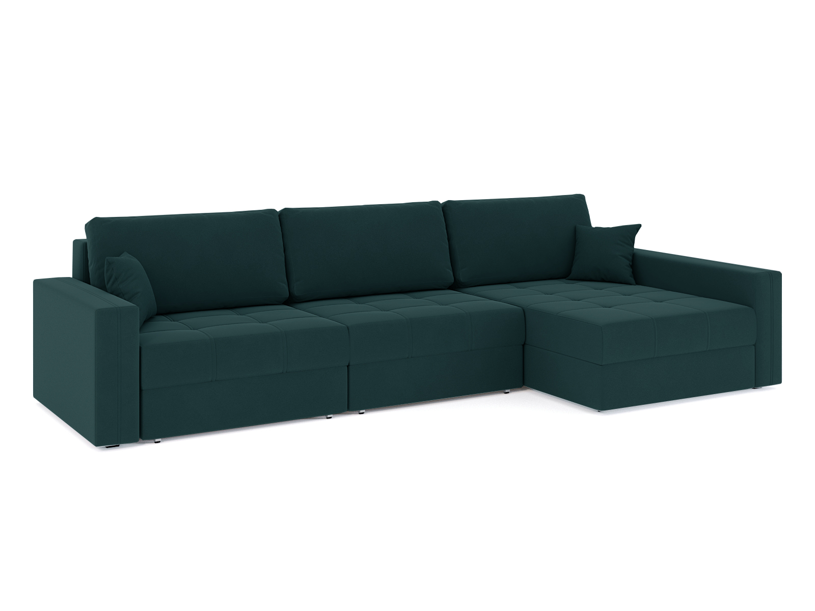 Диван-кровать угловой Брест 3 секции еврокнижка, велюр (Изумрудный)