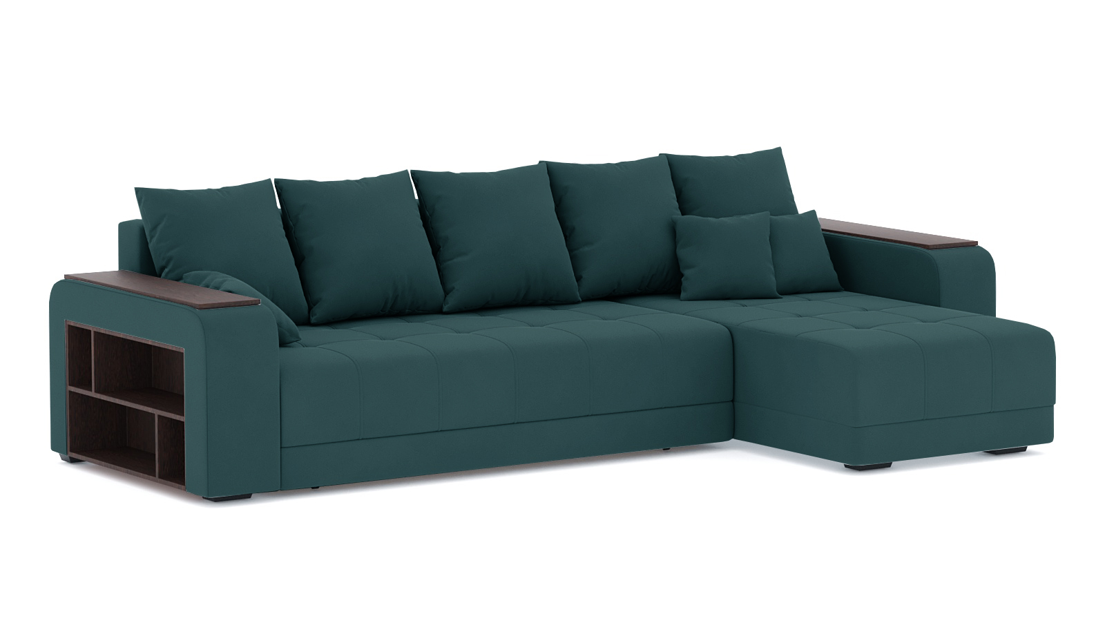 Диван-кровать угловой Дубай еврокнижка, велюр (Изумрудный)