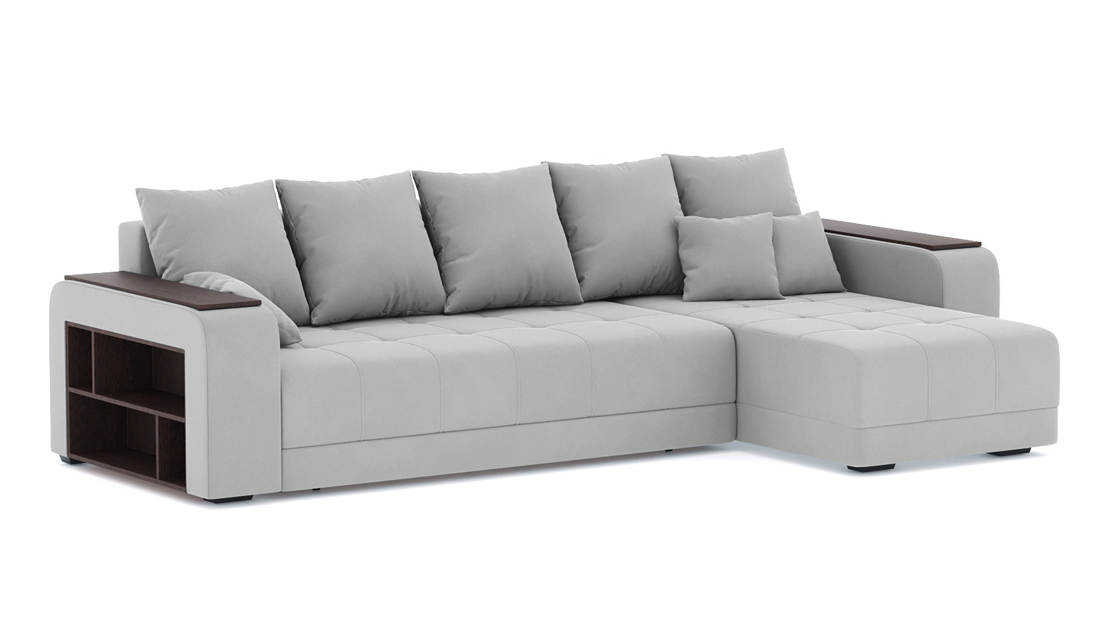 Диван-кровать угловой Дубай еврокнижка, велюр (Светло-серый)