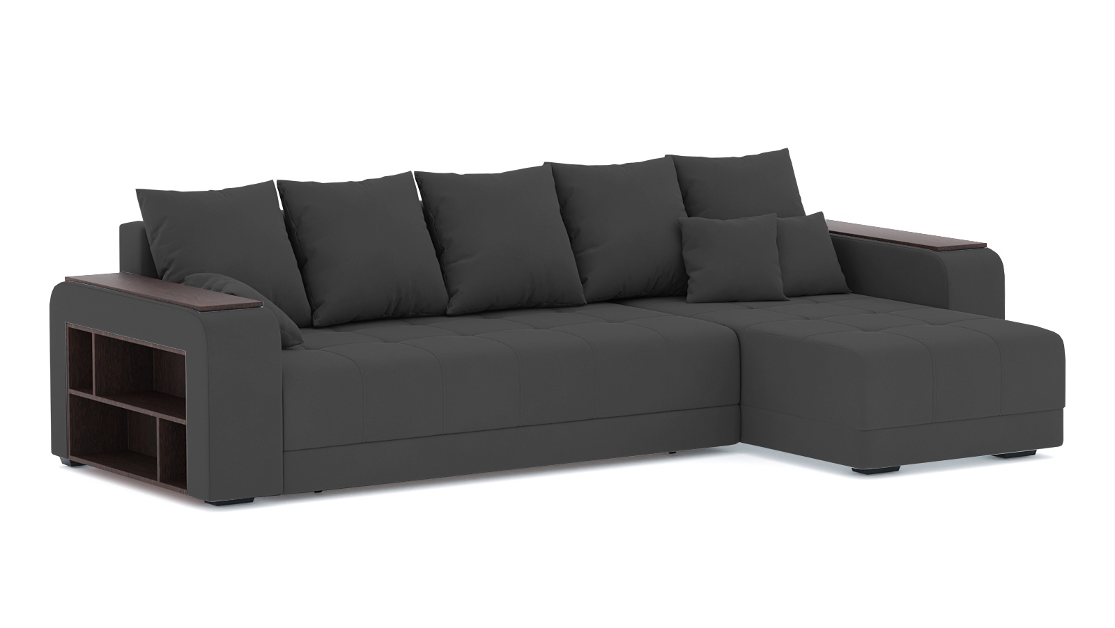 Диван-кровать угловой Дубай еврокнижка, велюр (Темно-серый)