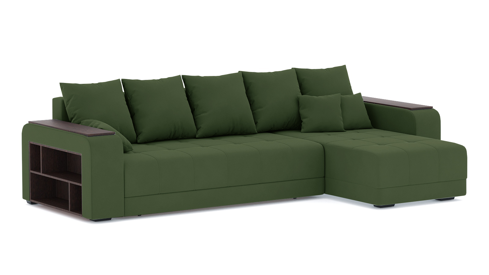 Диван-кровать угловой Дубай еврокнижка, велюр (зеленый)