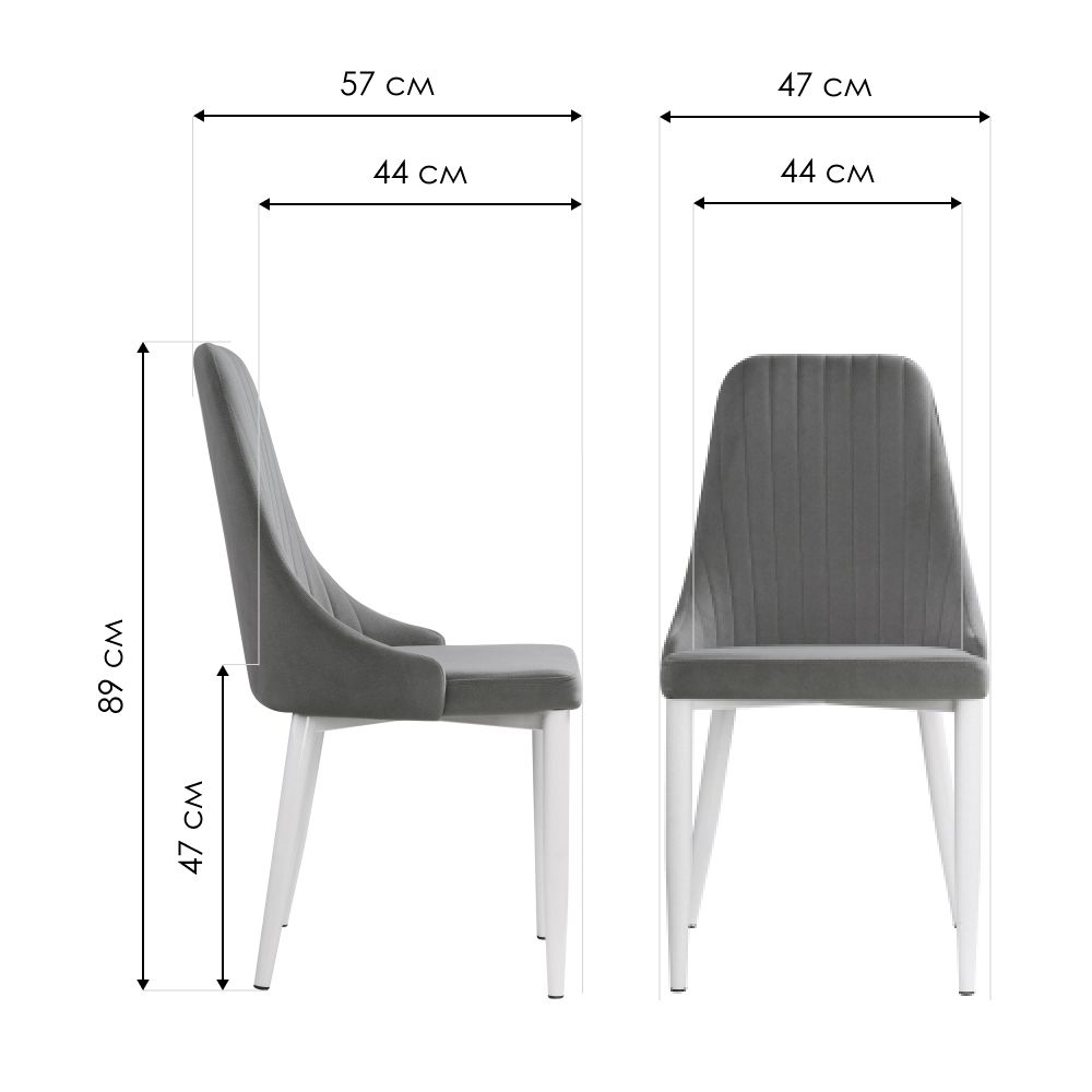 Материал каркаса - Окрашенный металл; Материал сиденья - Велюр; Материал ножек - Окрашенный металл; Материал обивки - Велюр; Цвет каркаса - Черный; Цвет ножек - Черный; Ширина - 47; Глубина - 57; Высота - 89; Ширина сиденья - 44; Глубина сиденья - 44; Высота сиденья - 47.