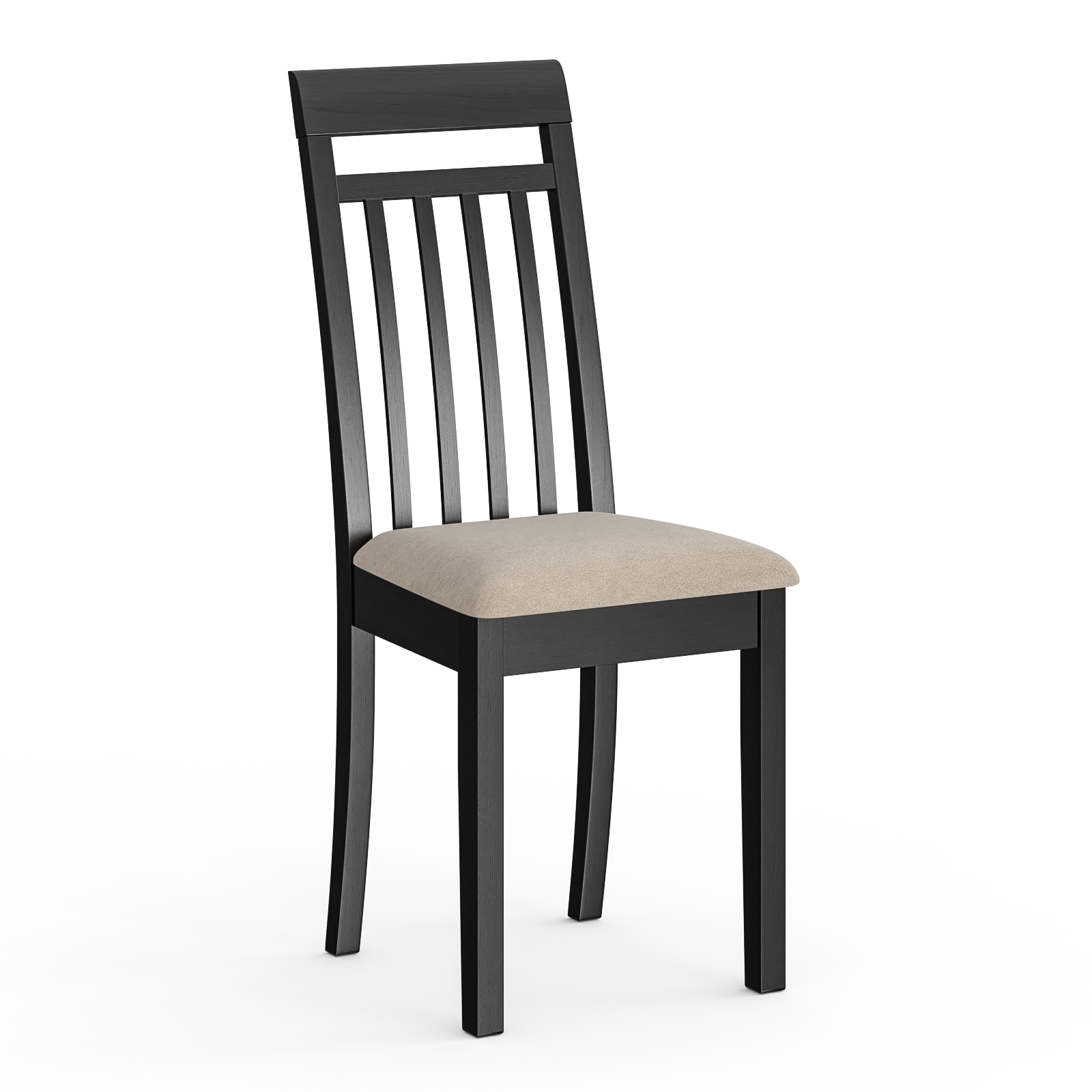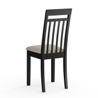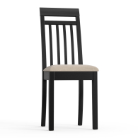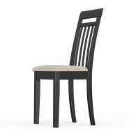 Этот стул станет гармоничным элементом кухни, столовой зоны или гостиной, создавая уют и комфорт в интерьере. Универсальная модель прекрасно впишется в пространство прихожей или кабинета, подчеркивая утончённость стиля. Каркас стула, включая спинку, выполнен из натурального массива дерева, окрашенного в благородный цвет венге. Качественная обработка древесины обеспечивает прочность конструкции и долгий срок службы. Спинка выполнена в виде вертикальной рамки с тремя тонкими планками и одной горизонтальной перекладиной вверху. Такая комбинация делает спинку визуально лёгкой, но при этом прочной.