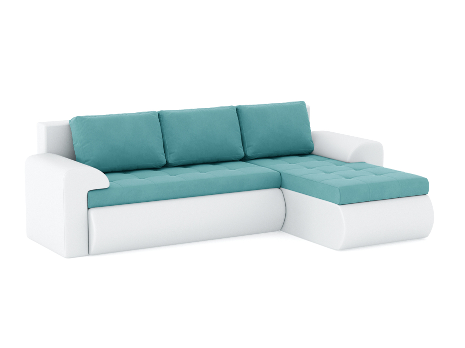 Диван-кровать угловой Кормак с подлокотниками, велюр+кож.зам. (Лазурный)