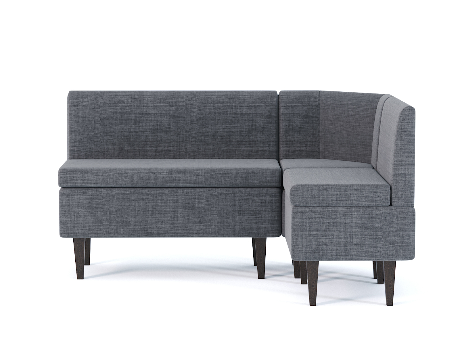 Без механизма трансформации. Наполнение ППУ. Ящик есть. Угол универсальный. Высота сиденья 500мм. Глубина сиденья 460мм. Высота опоры 200мм. Габариты ящиков: глубина 430мм, высота 200мм, ширина 1100мм и 600мм. Задняя спинка выполнена в технической ткани.