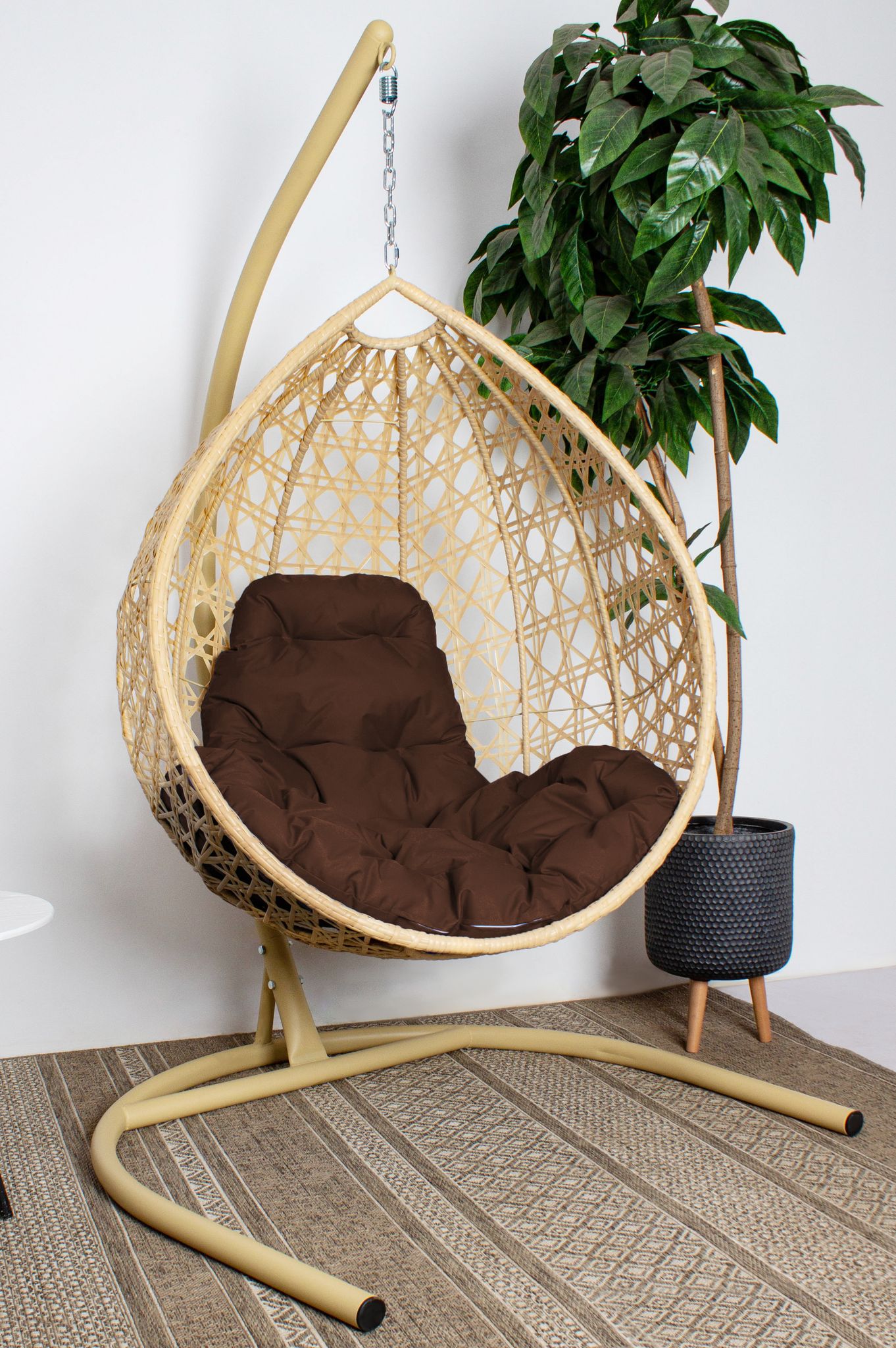 Отзывы о Столплит Подвесное кресло КАПЛЯ ЛЮКС с ротангом бежевое Коричневый