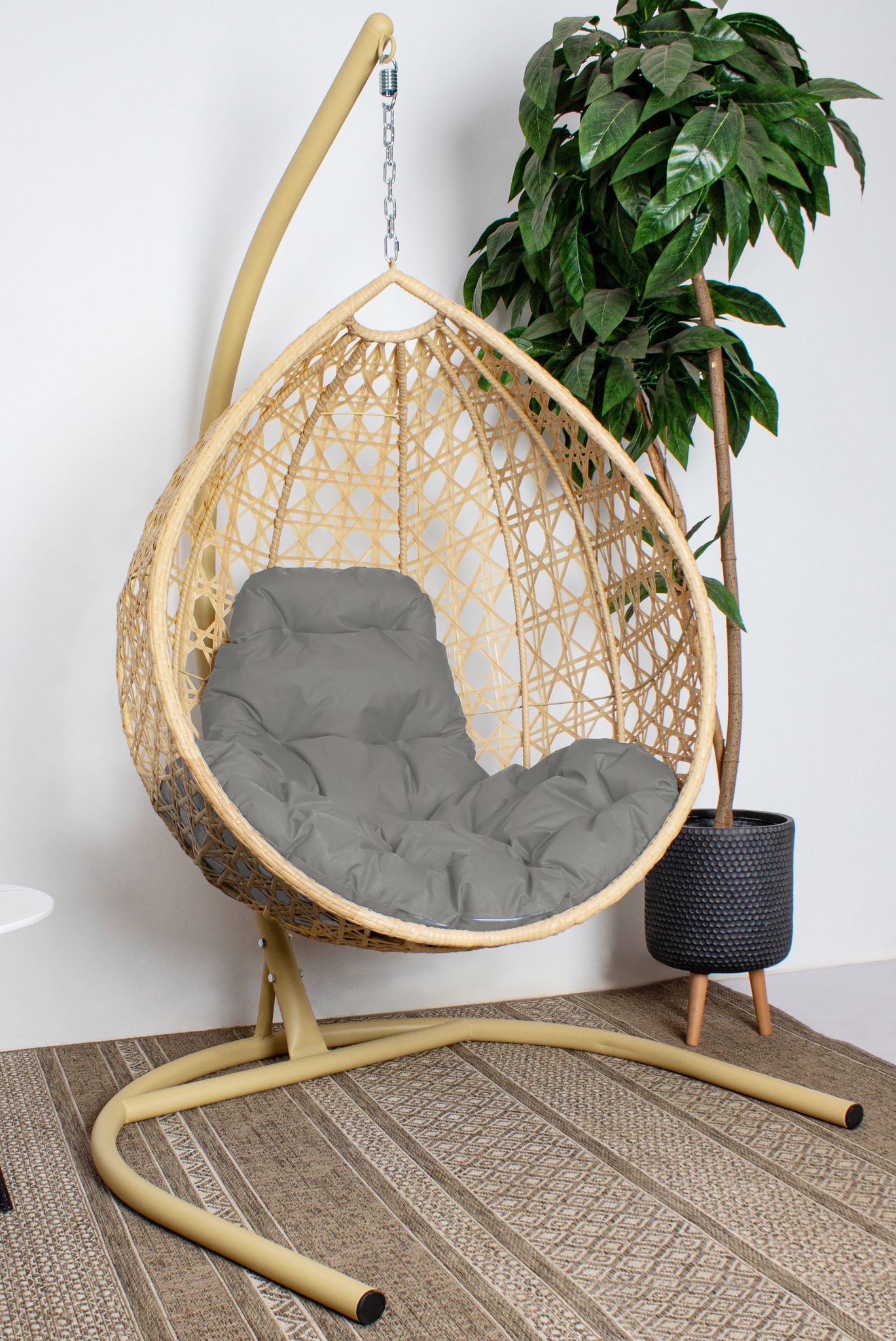 Отзывы о Столплит Подвесное кресло КАПЛЯ ЛЮКС с ротангом бежевое Серый