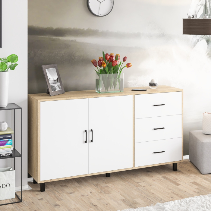 Широкий тумба-комод с ящиками и дверками РВК 123-1604 (Дуб Сонома, Белый) Код I0000442515