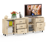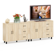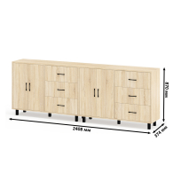 Два комода РВК 123-1204 могут использоваться не только для хранения, но и как стильная ТВ-тумба, которая подчеркнет современный дизайн вашего интерьера. В комплекте 2 комода, объединенных в единый блок. Каждый комод оснащен просторным и продуманным функционалом. Слева у каждого комода находится пара распашных дверок (732х284 мм), за которыми предусмотрена полка для аккуратного размещения вещей. Справа у каждого комода расположены 3 одинаковых выдвижных ящика. Размер фасадов ящиков составляет 242х570 мм, что обеспечивает достаточную вместимость. Ящики оборудованы шариковыми направляющими длиной 350 мм, что обеспечивает плавное и тихое выдвижение.