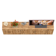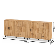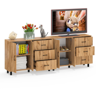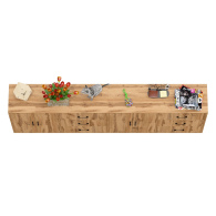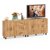 Два комода РВК 123-1204 могут использоваться не только для хранения, но и как стильная ТВ-тумба, которая подчеркнет современный дизайн вашего интерьера. В комплекте 2 комода, объединенных в единый блок. Каждый комод оснащен просторным и продуманным функционалом. Слева у каждого комода находится пара распашных дверок (732х284 мм), за которыми предусмотрена полка для аккуратного размещения вещей. Справа у каждого комода расположены 3 одинаковых выдвижных ящика. Размер фасадов ящиков составляет 242х570 мм, что обеспечивает достаточную вместимость. Ящики оборудованы шариковыми направляющими длиной 350 мм, что обеспечивает плавное и тихое выдвижение.