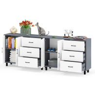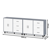 Два комода РВК 123-1204 могут использоваться не только для хранения, но и как стильная ТВ-тумба, которая подчеркнет современный дизайн вашего интерьера. В комплекте 2 комода, объединенных в единый блок. Каждый комод оснащен просторным и продуманным функционалом. Слева у каждого комода находится пара распашных дверок (732х284 мм), за которыми предусмотрена полка для аккуратного размещения вещей. Справа у каждого комода расположены 3 одинаковых выдвижных ящика. Размер фасадов ящиков составляет 242х570 мм, что обеспечивает достаточную вместимость. Ящики оборудованы шариковыми направляющими длиной 350 мм, что обеспечивает плавное и тихое выдвижение.