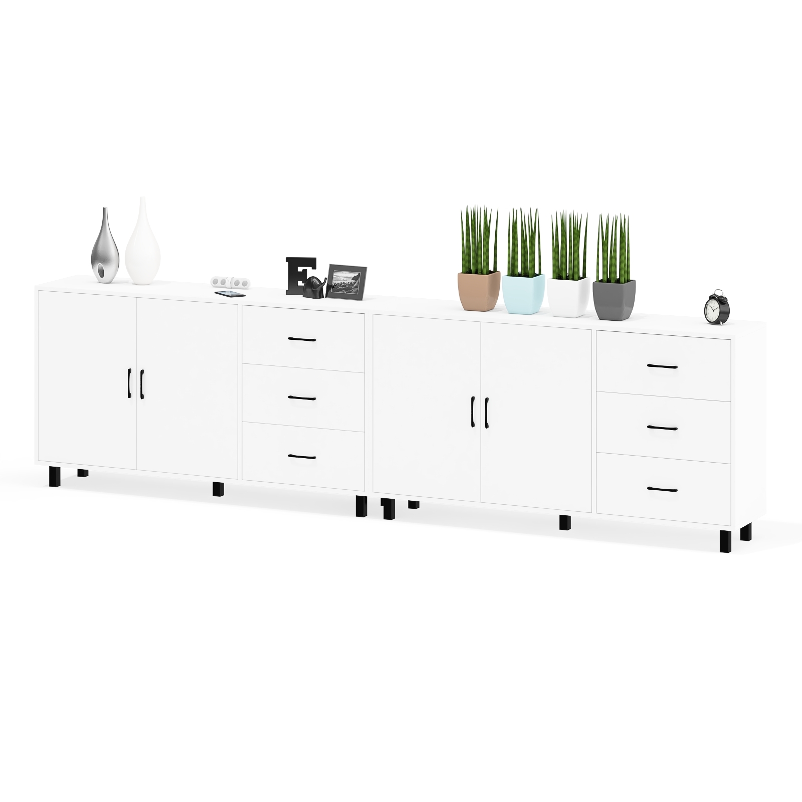 Обратите внимание, что тумбы-комоды не имеют универсальной сборки - дверцы расположены только слева, а ящики – справа. Каждая тумба-комод установлен на пять металлических опор черного цвета высотой 100 мм, придающие конструкции устойчивость и современный внешний вид. Для удобства открывания дверей и ящиков используются стильные металлические ручки длиной 128 мм черного цвета, которые гармонично дополняют общий дизайн. Корпус и фасады выполнены из высококачественной ламинированной ДСП толщиной 16 мм, а торцы надежно обработаны ПВХ-кромкой. Задняя стенка и дно ящиков изготовлены из ламинированной ДВП, что добавляет долговечности конструкции. Поставляется в разобранном виде.