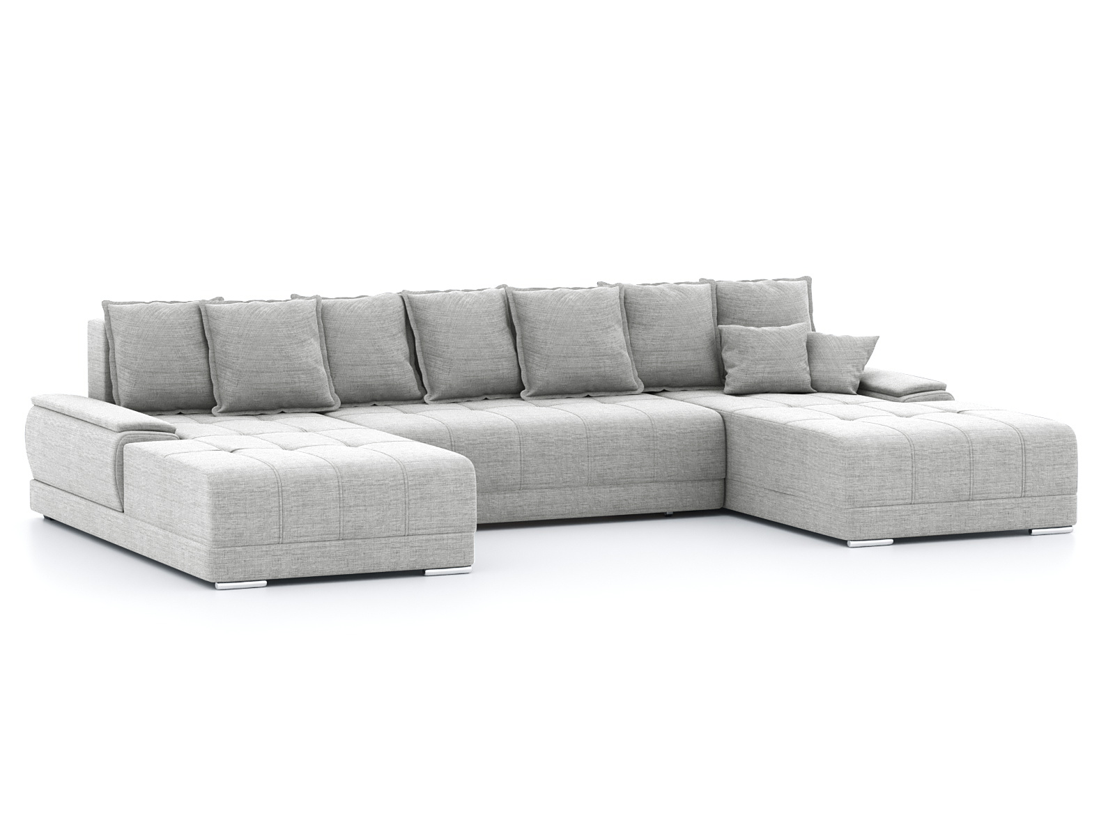 Механизм трансформации еврокнижка. Каркас ДСП, ДВП, ЛДСП, фанера, брус хвойных пород. Спальное место 2950х1300мм. Наполнение высокоэластичный ППУ. Ящик для белья есть. Наполнение подушек-крошка ППУ. Высота сиденья от пола 440мм. Глубина сиденья без подушек 700мм. В комплекте 7 больших подушек и 2 декоративных.