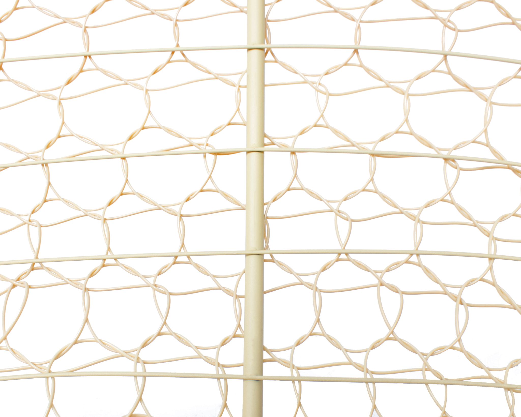 Стойка для садовых качелей выполнена из металла с порошковым покрытием. Стальной каркас-кокон исполнен по особой технологии с декоративным, плетением из искусственного экоротанга собственного производства (прочным материалом, без запаха, не восприимчивым к неблагоприятным температурным и погодным условиям). Корпус качели с ротангом выдерживает нагрузку до 120 кг.