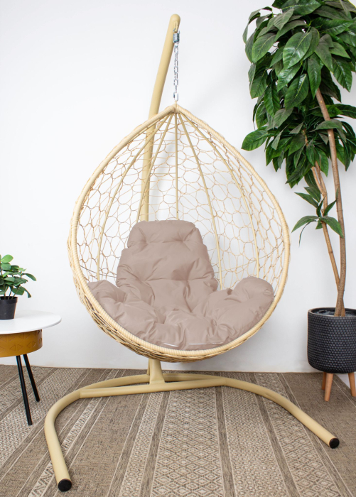 Отзывы о Столплит Подвесное кресло КАПЛЯ с ротангом бежевое Бежевый