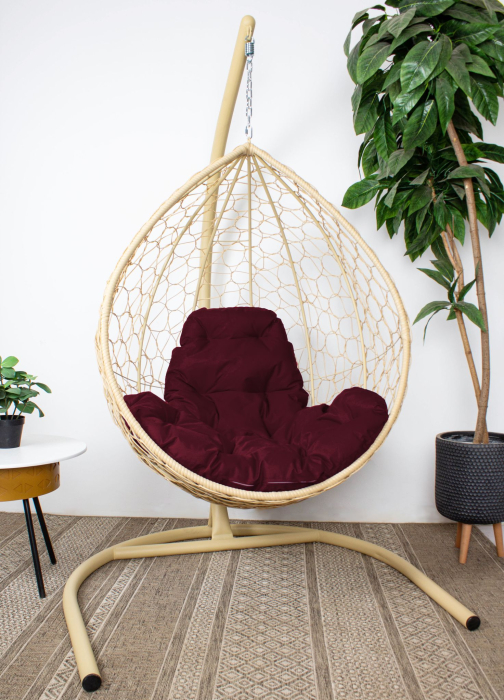Отзывы о Столплит Подвесное кресло КАПЛЯ с ротангом бежевое Бордовый