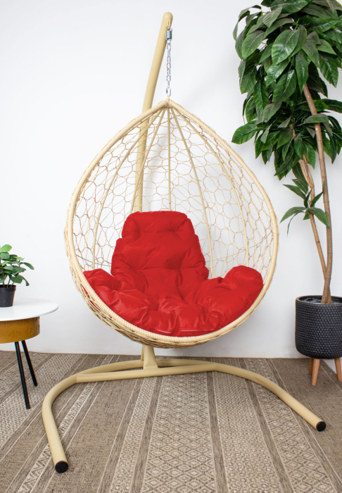 Подвесное кресло КАПЛЯ с ротангом бежевое (Красный) Код I0000442577