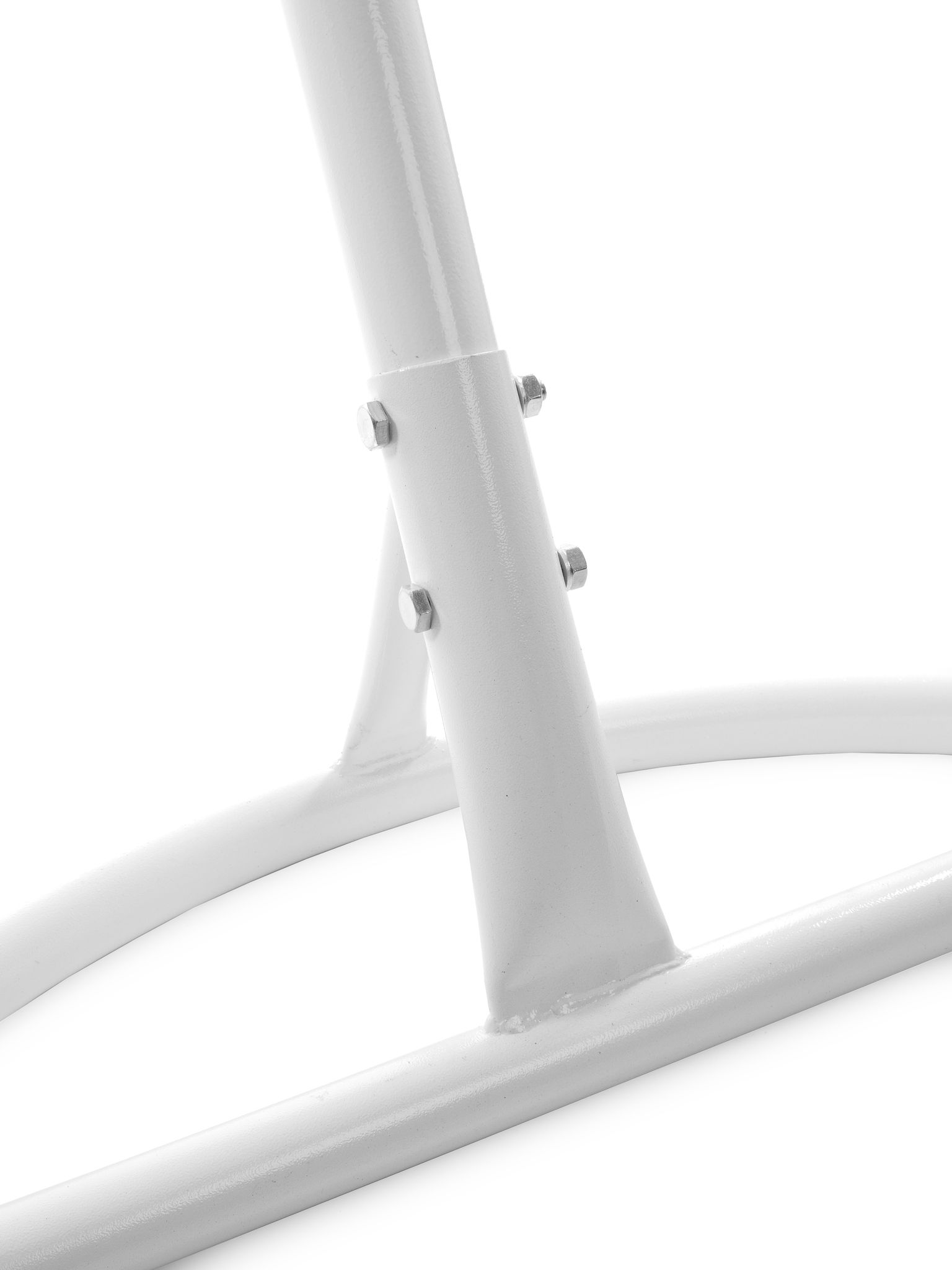 Стойка для садовых качелей выполнена из металла с порошковым покрытием. Стальной каркас-кокон исполнен по особой технологии с декоративным, плетением из искусственного экоротанга собственного производства (прочным материалом, без запаха, не восприимчивым к неблагоприятным температурным и погодным условиям). Корпус качели с ротангом выдерживает нагрузку до 120 кг.