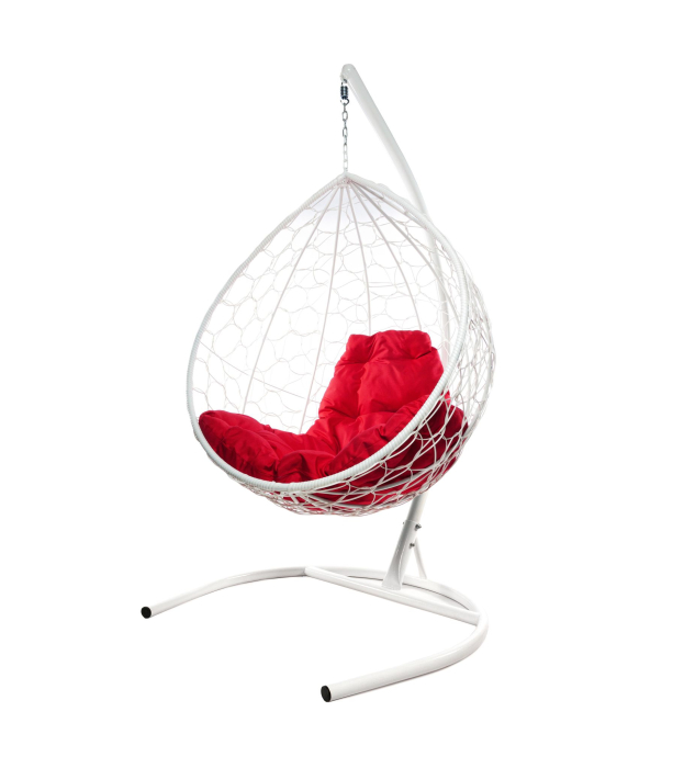 Подвесное кресло КАПЛЯ с ротангом белое (Красный) Код I0000442598