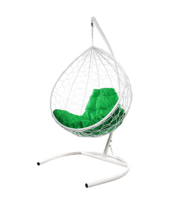 Подвесное кресло КАПЛЯ с ротангом белое (Зеленый) Код I0000442600
