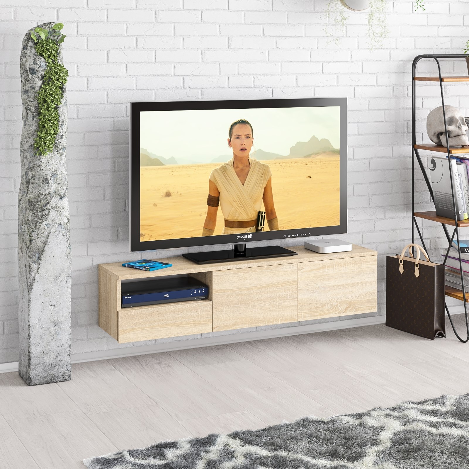 Отзывы о Столплит ТВ-тумба для телевизора подвесная выдвижной ящик и дверки Сити-10 Дуб Сонома, Белый