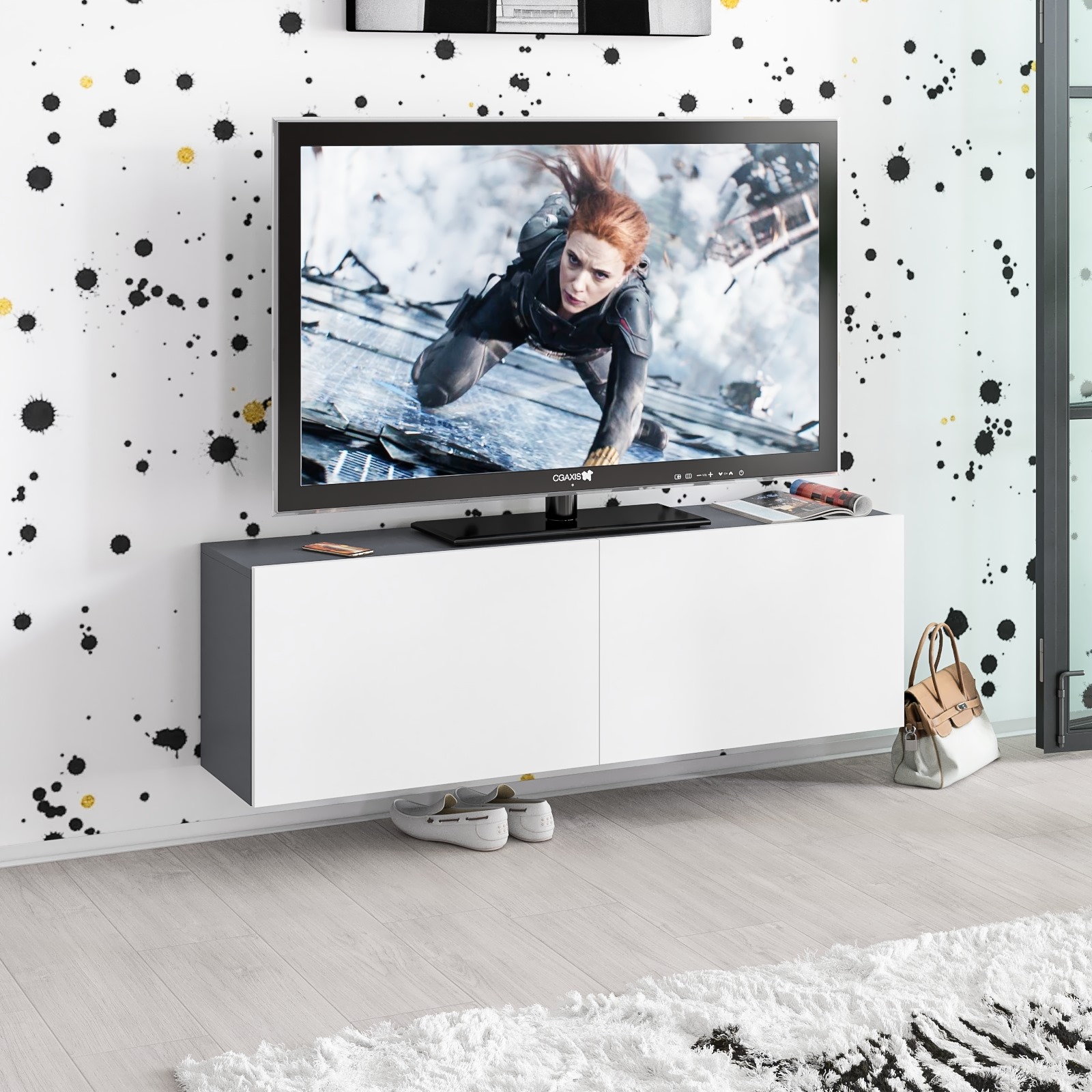 Подвесная ТВ-тумба РВК-1500 — стильный и функциональный элемент интерьера, идеально подходящий для современных гостиных.
