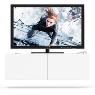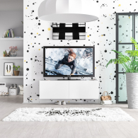 Благодаря подвесной конструкции, тумба не занимает место на полу и визуально облегчает пространство. Модель оборудована двумя вместительными отделениями без полок, каждое закрывается откидной дверкой на газлифтах — они обеспечивают плавное и тихое открывание. Такой формат хранения удобно использовать для техники, медиаплееров и прочих аксессуаров. Подвесной формат мебели не только визуально расширяет пространство, но и облегчает уборку под тумбой. Ручки отсутствуют — дверки открываются за край фасадов, сохраняя лаконичный внешний вид. Тумба крепится на стену при помощи трёх угловых навесов, обеспечивающих надёжность и устойчивость конструкции.