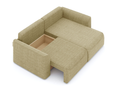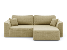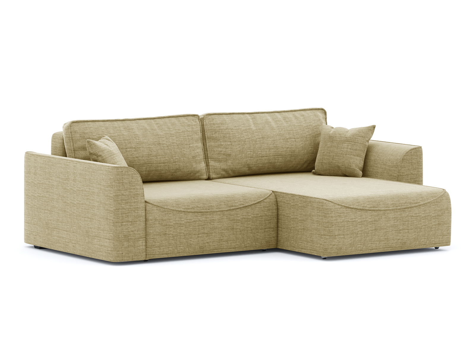 Механизм трансформации еврокнижка. Каркас ДСП, ДВП, ЛДСП, фанера, брус хвойных пород. Спальное место 2000х1600мм. Наполнение независимый пружинный блок+ППУ. Ящик для белья-960х690хВ200 находится под сиденьем. Оттоманка не открывается. Наполнение подушек-крошка ППУ, чехлы больших подушек съёмные на молнии. Высота сиденья от пола 450мм. Глубина сиденья без подушек 850мм. Угол дивана универсальный. В комплекте 2 большие подушки и 2 декоративные.