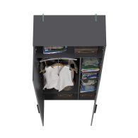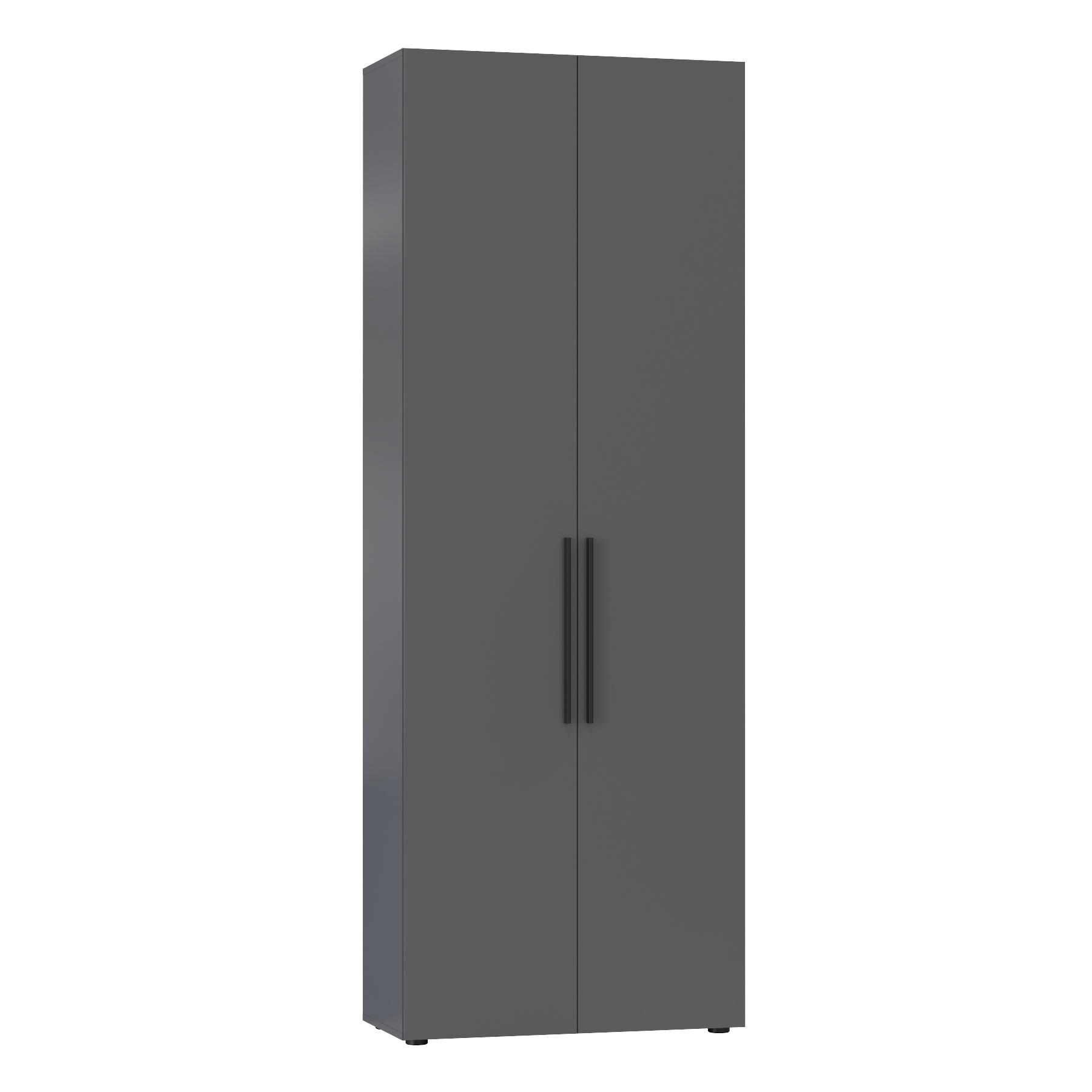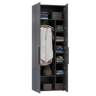 Шкаф Эйр 13.340 прекрасно подойдёт для размещения в прихожей, гостиной, спальне или детской. За двумя распашными дверками находится верхняя антресольная полка на всю ширину шкафа. Под антресолью расположены два отделения - одно с выдвижной штангой для одежды и нишей снизу, другое — с четырьмя съёмными полками и нижней нишей. Такое наполнение позволяет хранить как вещи на вешалках, так и аккуратно сложенные предметы гардероба. Всё внутреннее пространство организовано для максимального удобства и рационального хранения. Шкаф подходит для хранения как сезонной, так и повседневной одежды. Модель имеет универсальную сборку — отделения можно расположить как слева, так и справа, в зависимости от Ваших предпочтений. Чёрная металлическая ручка подчёркивает современный стиль мебели и удобна в использовании.