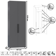 Габаритные размеры шкафа для одежды (ШхГхВ): 79.7х38.1х219.5 см.