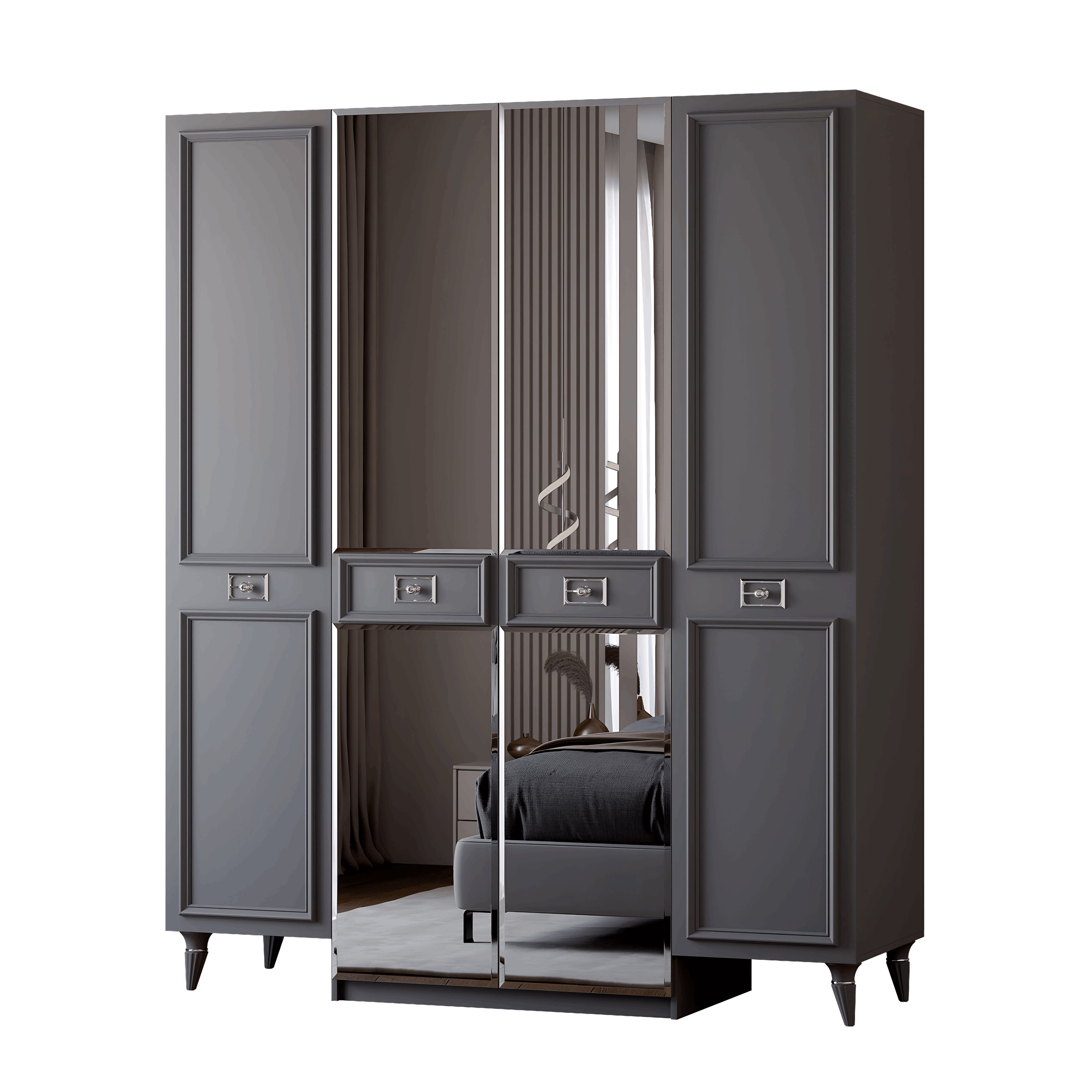Шкаф в спальню 4х дверный Валенсия (серебро) Код I0000442809