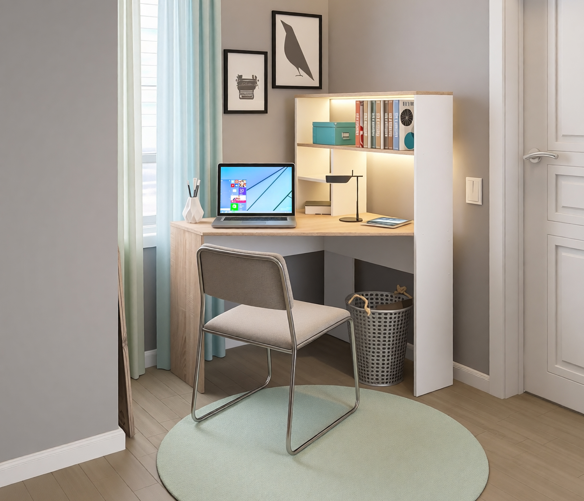 Функциональная столешница – достаточно места для монитора, клавиатуры и рабочих материалов