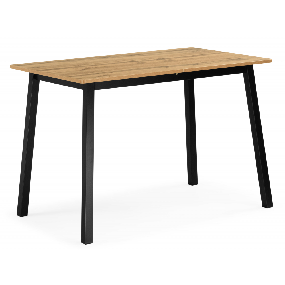 Модель с металлическим каркасом и практичной ламинированной столешницей прямоугольной формы. Компактные размеры в собранном виде (110×68×75 см) с возможностью трансформации до 140 см в длину. Ножки выполнены в классическом черном цвете, что придает изделию современный лаконичный вид. Идеальное решение для небольших кухонь и столовых зон.