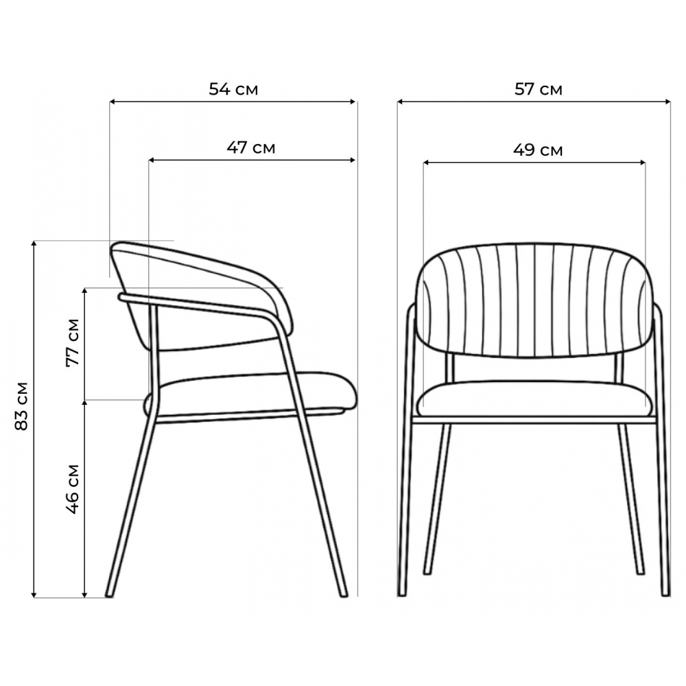 Высота подлокотников: 77 см. Материал каркаса - Металл; Материал сиденья - Велюр; Материал ножек - Металл; Материал обивки - Велюр; Цвет каркаса - Золотой; Цвет ножек - Золотой; Ширина - 57; Глубина - 54; Высота - 83; Ширина сиденья - 49; Глубина сиденья - 47; Высота сиденья - 46.